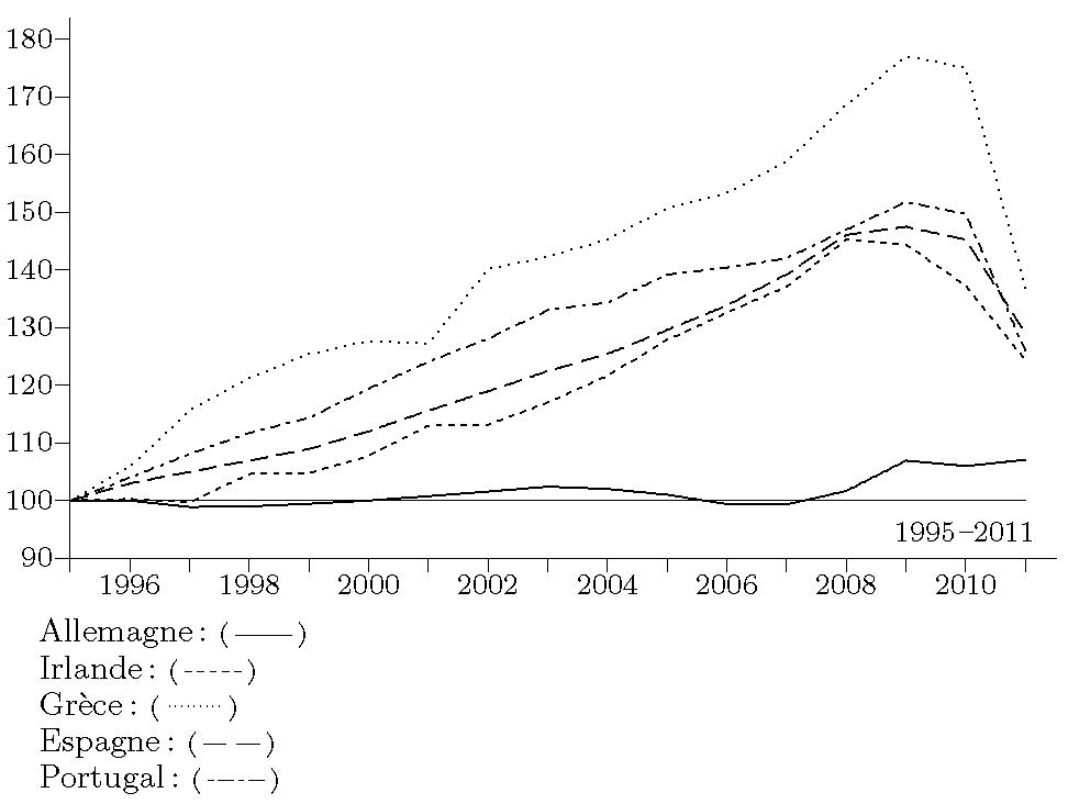 Η διεθνής ανταγωνιστικότητα είναι βέβαια σχετικό μέγεθος, αφού το ένα κεφάλαιο ανταγωνίζεται το άλλο. Εδώ θέλει ακόμη περισσότερη προσοχή. Αν κρίνουμε απλώς από τα επίπεδα ανταγωνιστικότητας, η Γερμανία ήταν πολύ πιο ανταγωνιστική από τις χώρες της περιφέρειας ήδη από το 1995. Αυτό όμως που πραγματικά βαραίνει στις διεθνείς συναλλαγές δεν είναι το επίπεδο της ανταγωνιστικότητας, αλλά το πως αυτή αλλάζει. Αν δηλαδή, μια χώρα κερδίζει ή χάνει ανταγωνιστικότητα. Ο απλούστερος τρόπος για να δούμε τη μεταβολή της ανταγωνιστικότητας ανάμεσα στις χώρες της Ευρωζώνης είναι να συγκρίνουμε τις αλλαγές στο Ονομαστικό Μοναδιαίο Κόστος Εργασίας.