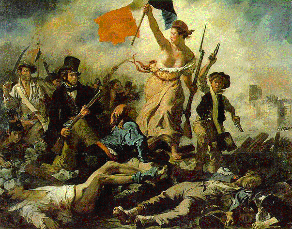 Ναι μεν «Η Ελευθερία οδηγεί το Λαό», αλλά με όπλα, με σπαθιά και γιαταγάνια; Τς, τς, τς… Αλήθεια, των κυρίων «καταδικάζετε τη βία απ’ όπου κι αν προέρχεται;», πώς και τους ξέφυγε (και) ο Ντελακρουά;