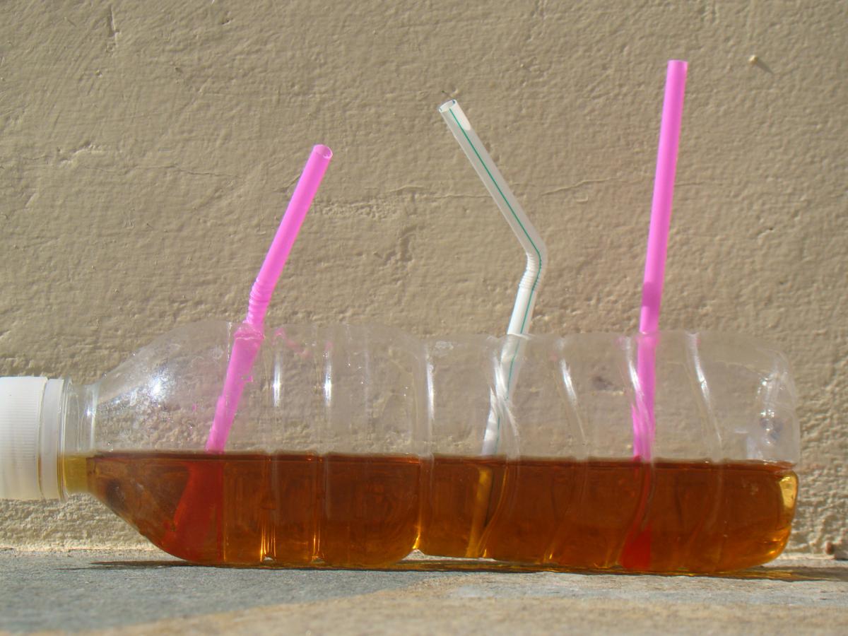 Είναι επιστημονικό μας χρέος να θυμόμαστε τα «συγκοινωνούντα δοχεία». Ο υδροφόρος ορίζοντας είναι σαν ένα μπουκάλι. Κάνοντας νέες γεωτρήσεις είναι σαν να βάζουμε στο μπουκάλι άλλο ένα καλαμάκι. Κι εκείνο το ίδιο (ρυπασμένο) νερό θα απορροφήσει. Έστω, λοιπόν, ότι το μπουκάλι της φωτογραφίας είναι ο υπόγειος υδροφόρος ορίζοντας σε όποια περιοχή ζείτε. Αν μια γεώτρηση έχει (ή θα αποκτήσει) πρόβλημα με βαρέα μέταλλα (π.χ. το άσπρο καλαμάκι), τότε το ίδιο πρόβλημα θα έχει αργά ή γρήγορα και μια άλλη γεώτρηση λίγα χιλιόμετρα πιο κάτω, κι ας είναι σε άλλο βάθος ή με άλλο χρώμα καλαμάκι.