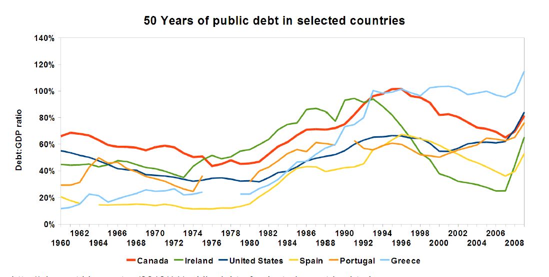 Οι παρεμβάσεις αυτές έχουν στο επίκεντρό τους το σύνολο των οικονομικών, κοινωνικών και πολιτικών συνθηκών και όρων που είχαν διαμορφωθεί κατά την ιστορική διαδρομή του καπιταλισμού. Στα διαγράμματα 1 και 2 βλέπουμε τη διαχρονική μεταβολή του ελληνικού δημοσίου χρέους σε δισεκατομμύρια ευρώ και σαν ποσοστό του ΑΕΠ από το 1988 ως το 2009.