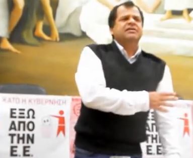 Ο πρώτος λόγος που εμείς κατεβαίνουμε σε αυτήν την μεγάλη πολιτική μάχη που έχουμε μπροστά μας είναι για να περάσουμε το μήνυμα έξω από την ΕΕ για να ζήσουν οι εργαζόμενοι, οι άνεργοι, οι φτωχοί, οι αγρότες που ξεκληρίζονται-για να ζήσει ο λαός.