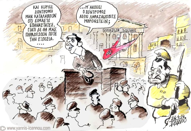 Το πλεόνασμα αναφορών στην Ελλάδα εν είδει σχολικής έκθεσης, λειτουργεί ως προπέτασμα καπνού για την εκκωφαντικό έλλειμμα οποιασδήποτε αναφοράς σύγκρουσης με την καπιταλιστική τάξη πραγμάτων. Λες και υποφέρουν όλοι με τον ίδιο τρόπο στην Ελλάδα. Σε μια στιγμή που η πολιτική του κεφαλαίου, ντόπιου και πολυεθνικού, σαρώνει τα δικαιώματα της εργατικής τάξης, των φτωχομεσαίων αγροτών, των επιστημόνων, των νέων, των μικρών επαγγελματιών, ο ΣΥΡΙΖΑ, δε βγάζει άχνα για το κεφάλαιο. Άντε το πολύ πολύ να μιλήσει για ‘’τραπεζοκρατία’’ ή για τους ‘’ολιγάρχες των ΜΜΕ’’.