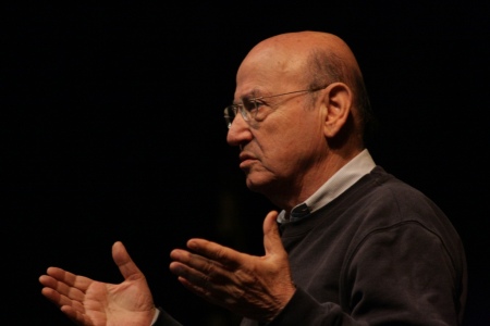 Ερώτηση (συνέχεια): Έλεγε ο Παύλος Σιδηρόπουλος ότι «όταν ένα έργο τελειώνει και φεύγει από τον δημιουργό του, αποκτά δική του υπόσταση, δική του ζωή, έχει δικιά του αυτονομία και συνεπώς δεν μπορεί σε καμία περίπτωση να συνδεθεί με τον καλλιτέχνη, μπορεί κανείς να το εκλάβει όπως θέλει, να πάρει τον δικό του δρόμο τον οποίο δεν τον ελέγχει ο καλλιτέχνης». Κατά πόσο, λοιπόν, ο δημιουργός θέλει ή μπορεί να ελέγξει το έργο του. Σε ένα χαλασμένο κόσμο, όπως εσείς είπατε, αυτό που μου λείπει από τον Αγγελόπουλο είναι αυτή η εκδήλωση να γίνεται συχνότερα, να γίνεται στο αμφιθέατρο της Νομικής με 1000 άτομα, μιας και υπάρχει και η απειλή κατάργησης του ασύλου. Αυτό που μου λείπει εμένα είναι ένας παγκοσμίου φήμης σκηνοθέτης, σαν κι εσάς με την αναγνώριση που έχει, να ανήκει στο no sponsors movement. Να απορρίπτει πια το Μέγαρο, τους σπόνσορες, όσο μπορεί να γίνει αυτό.