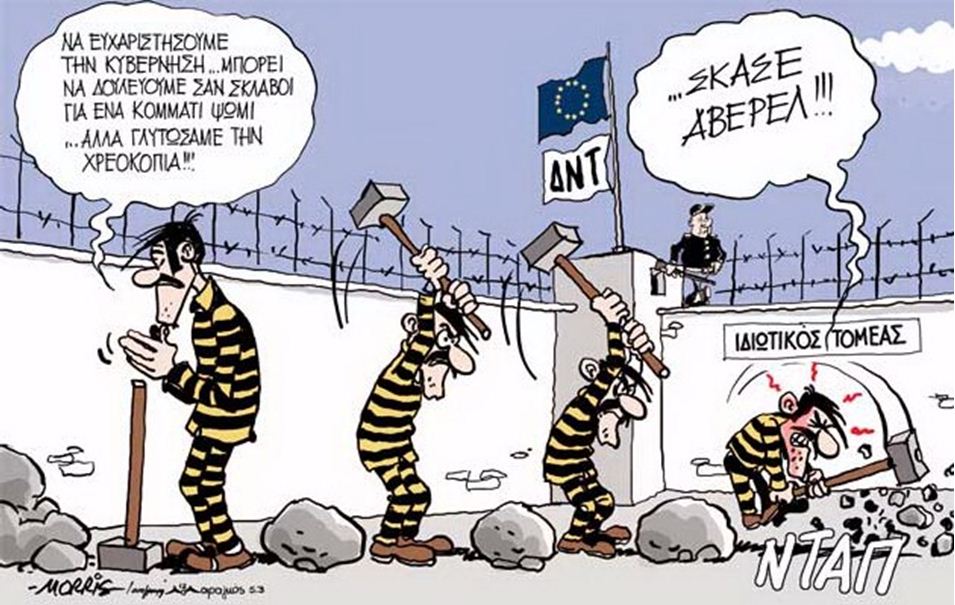 Εν τω μεταξύ τα έβαλαν για σιγουριά(!) να αγοράζουν ομόλογα του ελληνικού δημοσίου. Και όταν τα ταμεία δεν το έκαναν μόνα τους το έκανε από μόνη της η Τράπεζα της Ελλάδας. Έτσι ενώ σώζουν τις τράπεζες με τα 130 πριν και 50 τώρα δις για να σώσουν μαζί τους το τομάρι και την οικονόμα τους οι τραπεζίτες βουλιάζουν ταυτόχρονα τα ταμεία. Για να κόψουν αύριο τις συντάξεις πείνας και να τις κάνουν ελεημοσύνης. Έ, όχι λοιπόν! Θα πάτε όλοι φυλακή… Πολιτικό προσωπικό, υπουργοί και πρωθυπουργοί, πρόεδροι της ΤΕ, μέλη των ΔΣ των ταμείων που θα ψηφίσετε υπέρ του «κουρέματος» τους. Όλοι. Μηδενός εξαιρουμένου. Δεν πρόκειται να σταθεί δημοκρατική κυβέρνηση σε αυτόν τον τόπο, πολύ περισσότερο εργατική λαϊκή, αν δεν το κάνει. Το απαιτεί το δίκιο μας και θα το επιβάλουμε με κάθε μέσο. Έχουν φάει μέχρι τώρα πάνω από 100 δις που τα έδωσαν διαχρονικά στους εργοδότες. Καμιά παραγραφή δεν θα υπάρξει όσος καιρός και να περάσει!