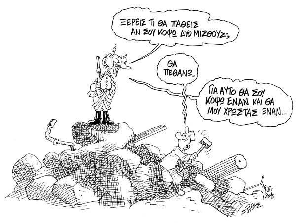 ‘’Στις σημερινές συνθήκες προέχει το “πάγωμα” και όχι η μείωση των μισθών και δημόσιων δαπανών και η αποτροπή της περαιτέρω ύφεσης με κάθε μορφής πρόσφορο και έκτακτο μέτρο’’. (http://www.avgi.gr/ArticleActionshow.action?articleID=691383)